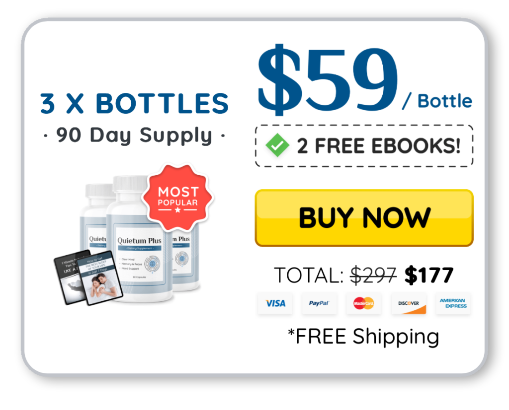 We recommend ordering the largest amount so you can stock up and make sure your body, brain and ears take full advantage of the long-term benefits of Quietum Plus.